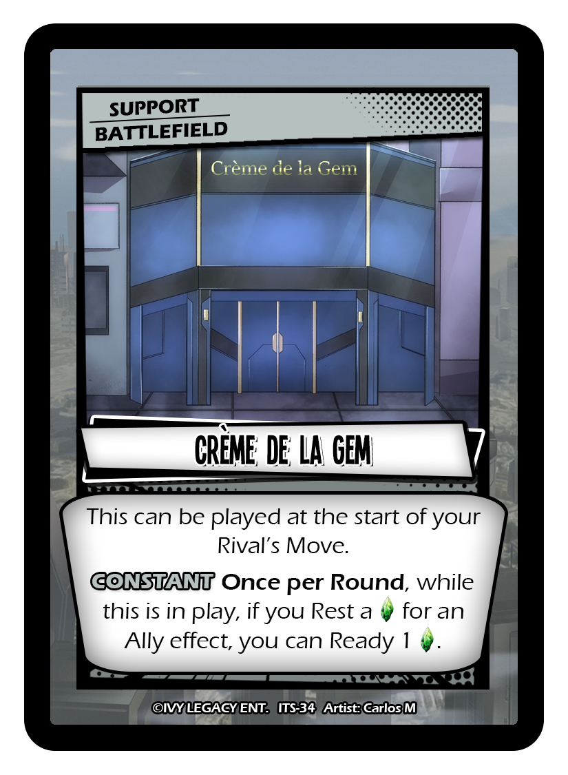 Text: This can be played at the start of your Rival's Move. CONSTANT Once per Round, while this is in play, if you Rest a Crystal for an Ally effect, you can Ready 1 Crystal.