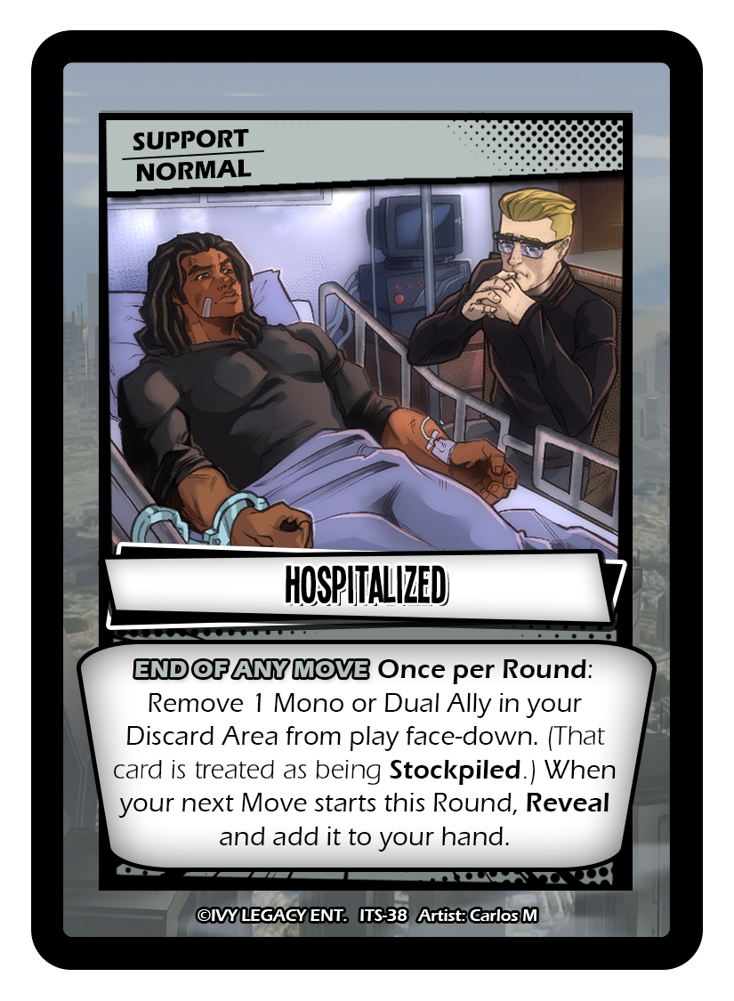 Text: END OF ANY MOVE Once per Round: Remove 1 Mono or Dual Ally in your Discard Area from play face-down. (That card is treated as being Stockpiled.) When your next Move starts this Round, Reveal and add it to your hand.