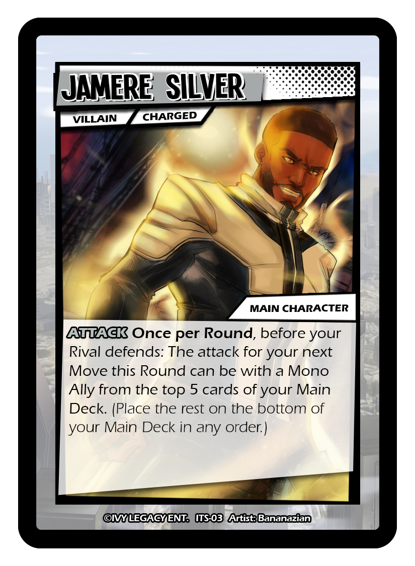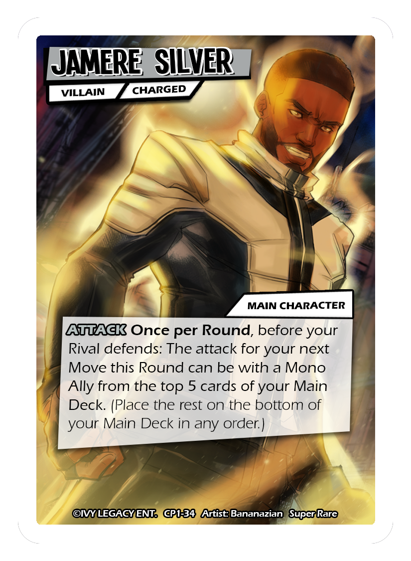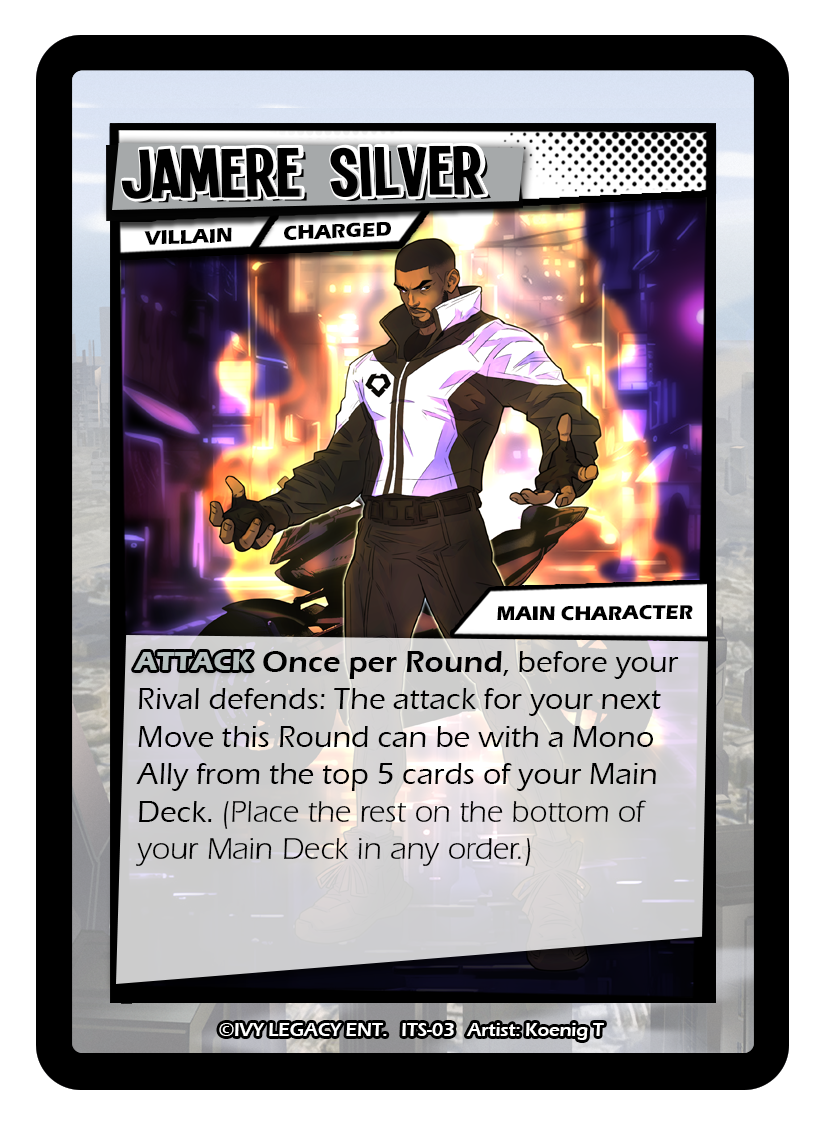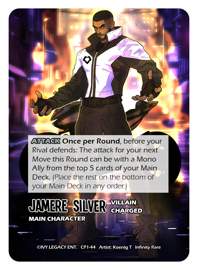 Text: ATTACK Once per Round, before your Rival defends: The attack for your next Move this Round can be with a Mono Ally from the top 5 cards of your Main Deck. (Place the rest on the bottom of your Main Deck in any order.)
